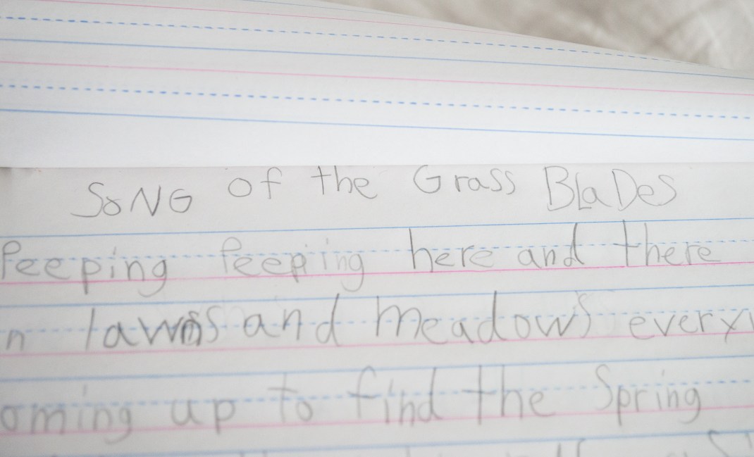 It’s a poem about spring and fresh blades of grass peeping over the lawns.