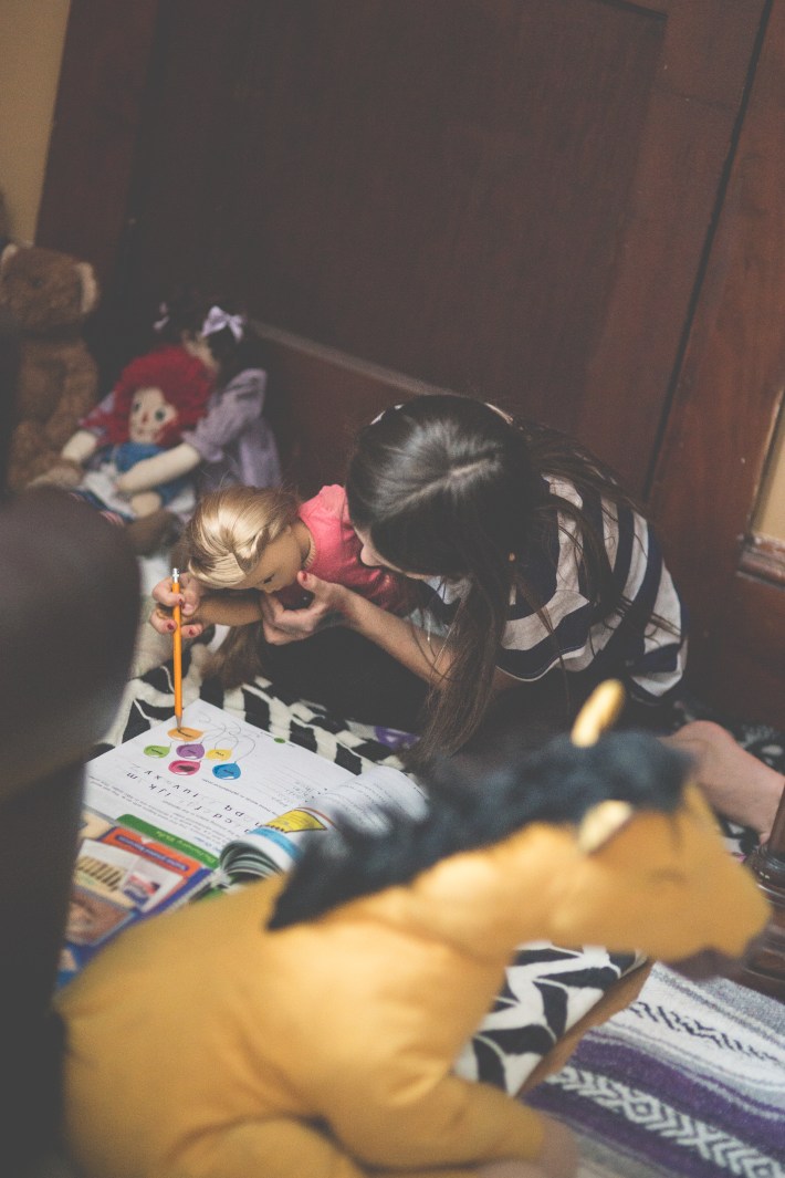 Around my house, Asher reads to an audience of his stuffed animals. Lila teaches her Isabelle doll how spell. Evaline uses Dharma as a pillow and points to the pictures in a book about Minnie and Mickey. Alex finished his online curriculum and is now lost in a book.