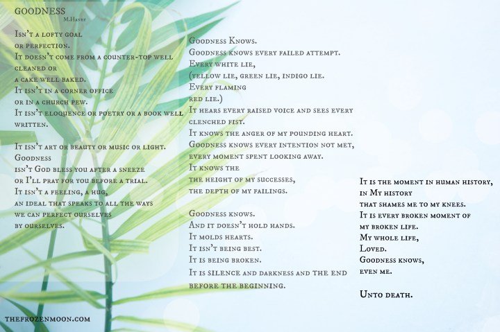 This morning, Evaline broke a bowl, split it down the middle in two while attempting to refill it with Goldfish. Lila held the pieces together and announced she could fix it. But, you’ll still see the crack, she said, showing me the damage. It was… Read More